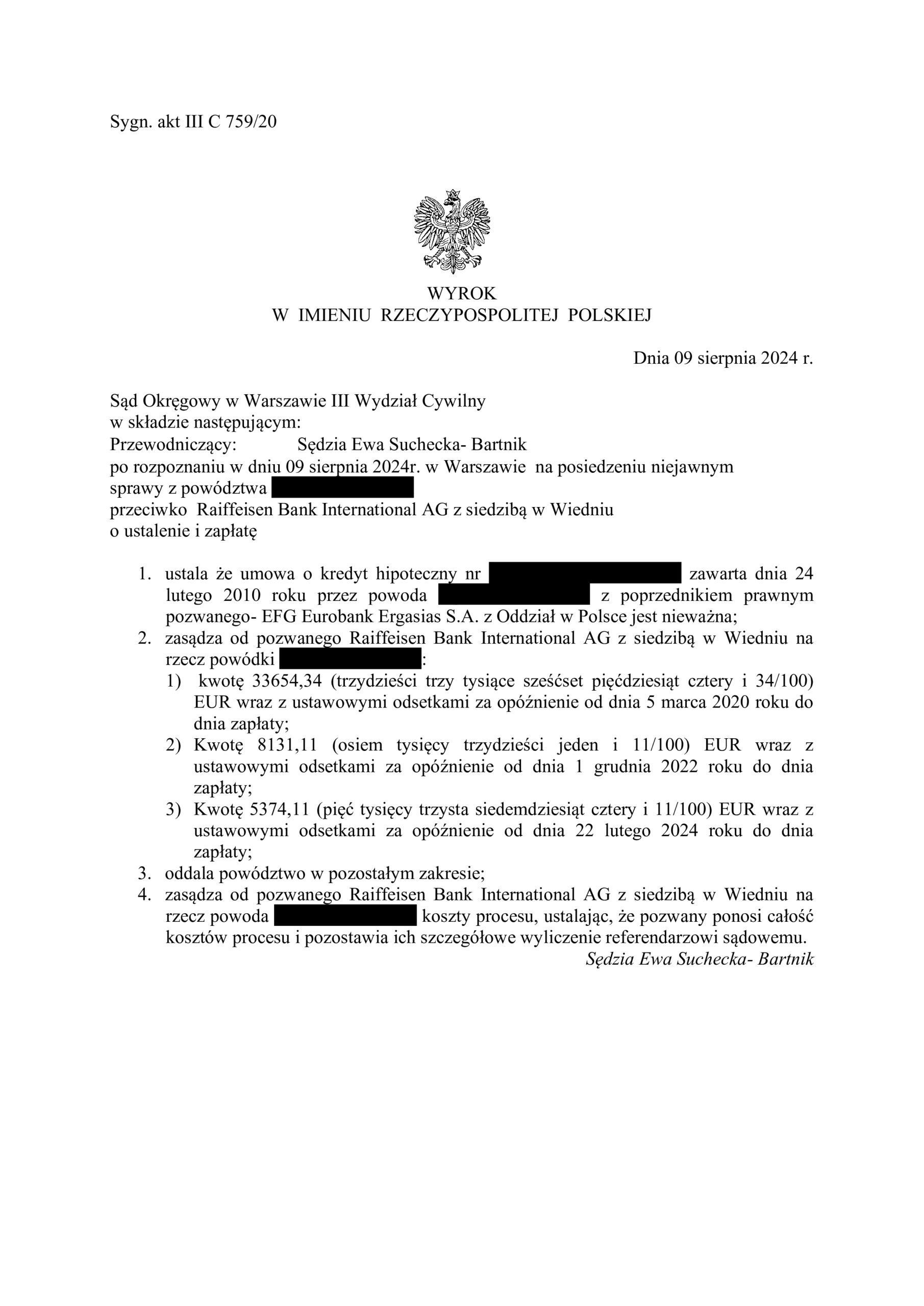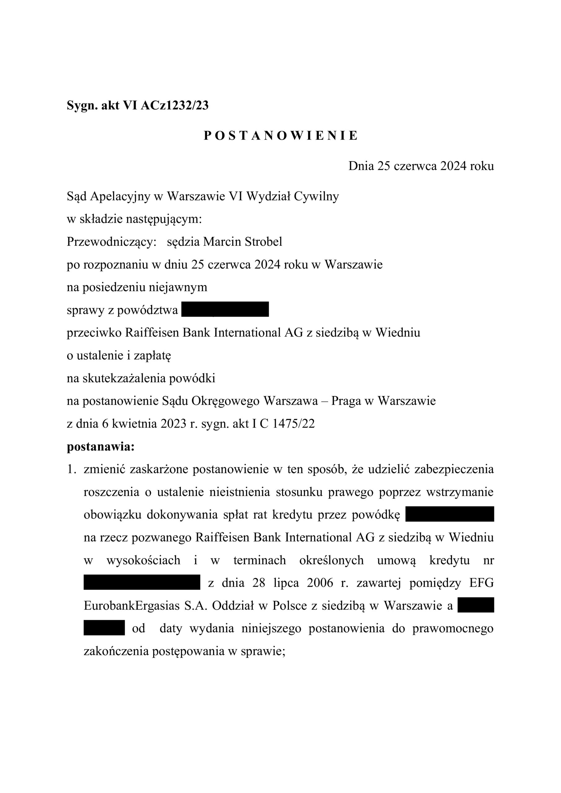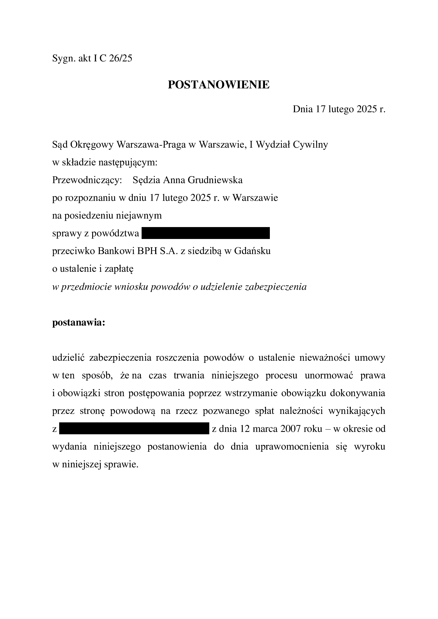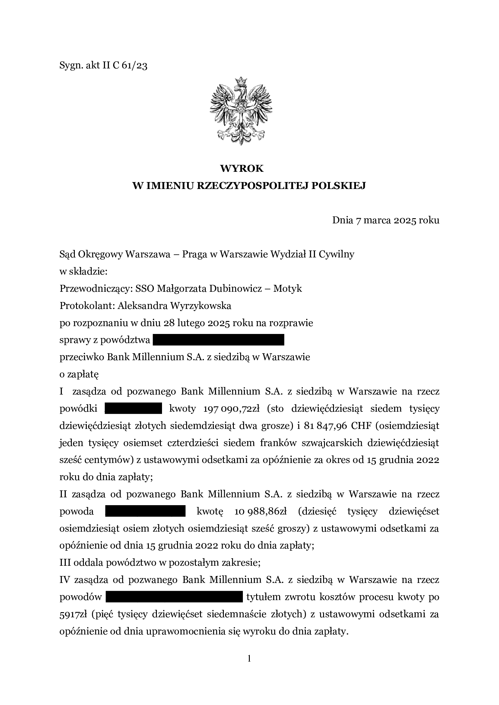 Reprezentując klienta dążymy do jak najlepszej ochrony interesów klienta, w związku z tym kierowane względem banku roszczenia dotyczą zarówno uznania umowy za nieważną w całości jak i jej odfrankowienia, co dodatkowo zabezpiecza interes klienta.